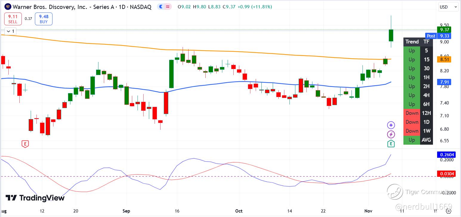 We should be seeing some more upside coming from WBD, even though their third-quarter revenue missed expectations, there should be more upside coming from this company as consumer spending should be coming back strong with the inflation falling, and consumer having more disposable income.