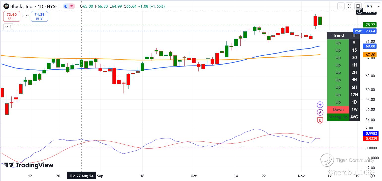 $Block(SQ)$ saw an 11% decline in after-hours trading following soft Q4 guidance and a Q3 revenue miss. The company expects Q4 adjusted EBITDA of $725 million, below analyst estimates, and continues to target long-term growth objectives. Despite matching EPS expectations for Q3, the company's outlook weighed on investor sentiment.