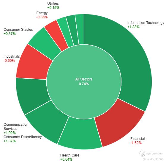 This has helped the communication services and information technology sectors to gain 1.92% and 1.83% respectively, making them the significant winners in the S&P 500 sectors.