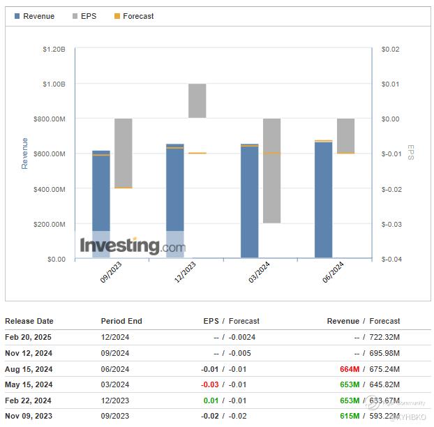 For the coming earnings, the market forecast is -0.005 and $695.98M for the EPS and revenue respectively.