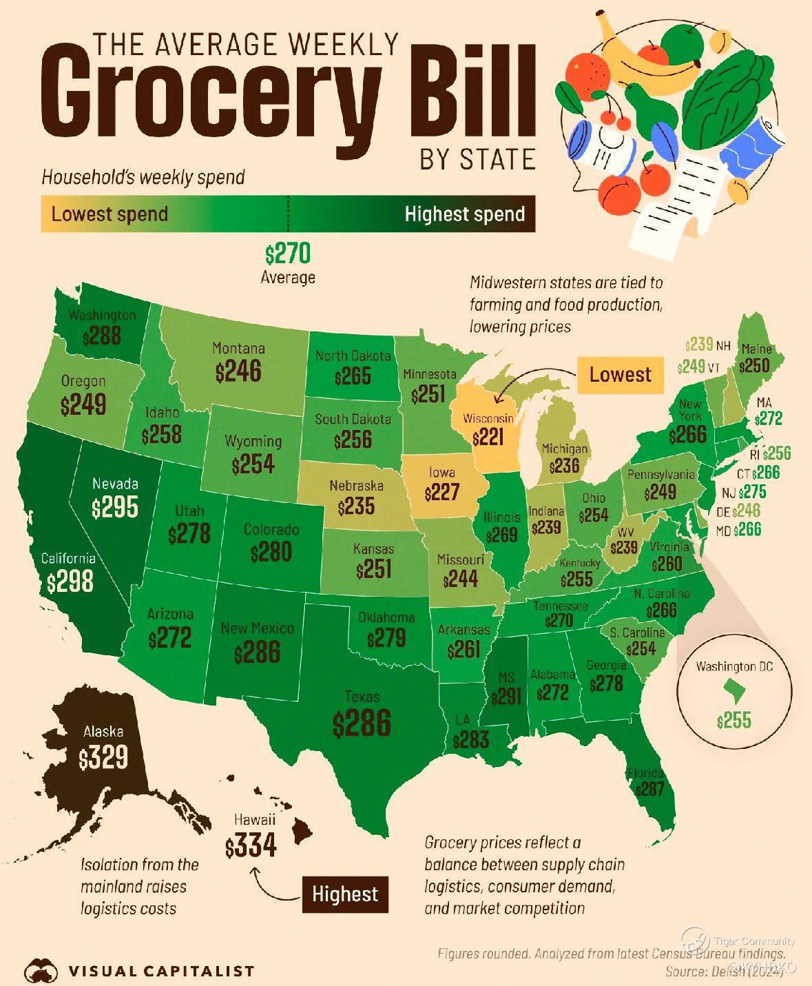 The average American household spends $270 a week on Groceries - X user Visual Capitalist