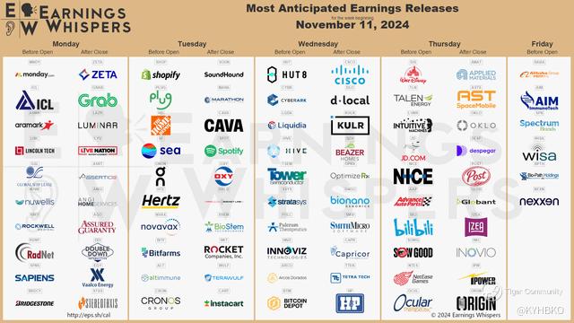 r/EarningsWhisper - The Most Anticipated Earnings Releases for the Week of November 11, 2024