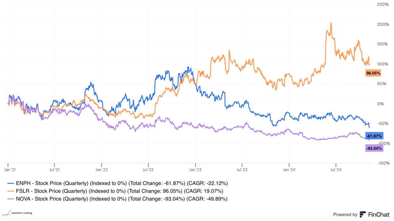 The “obvious” time to invest in solar energy was in 2020 when the power in Washington D.C. shifted parties. In reality, 2020 was a terrible time to buy solar stocks. This chart doesn’t include $SunPower(SPWR)$ (a company I owned) because…it went bankrupt earlier this year!