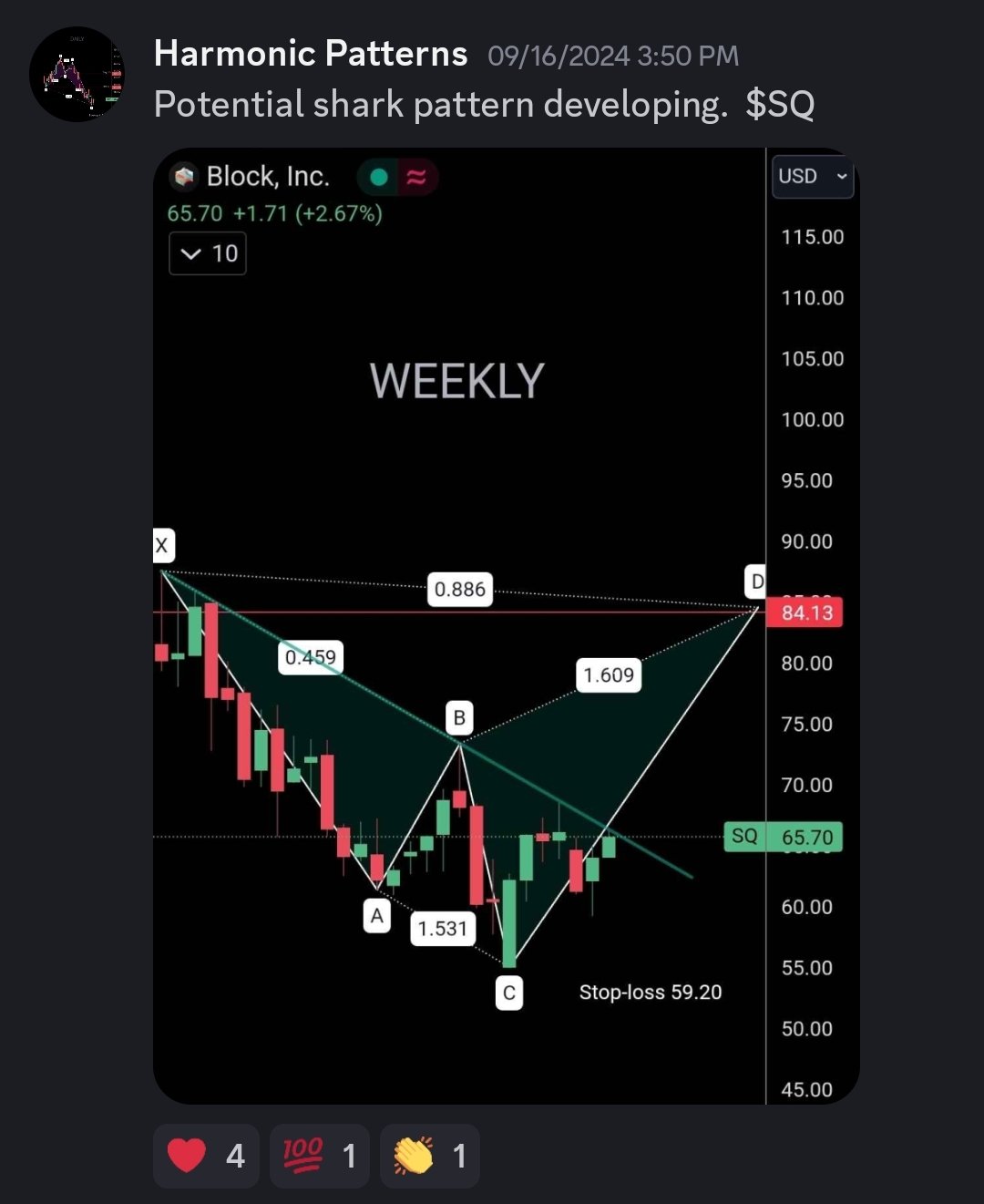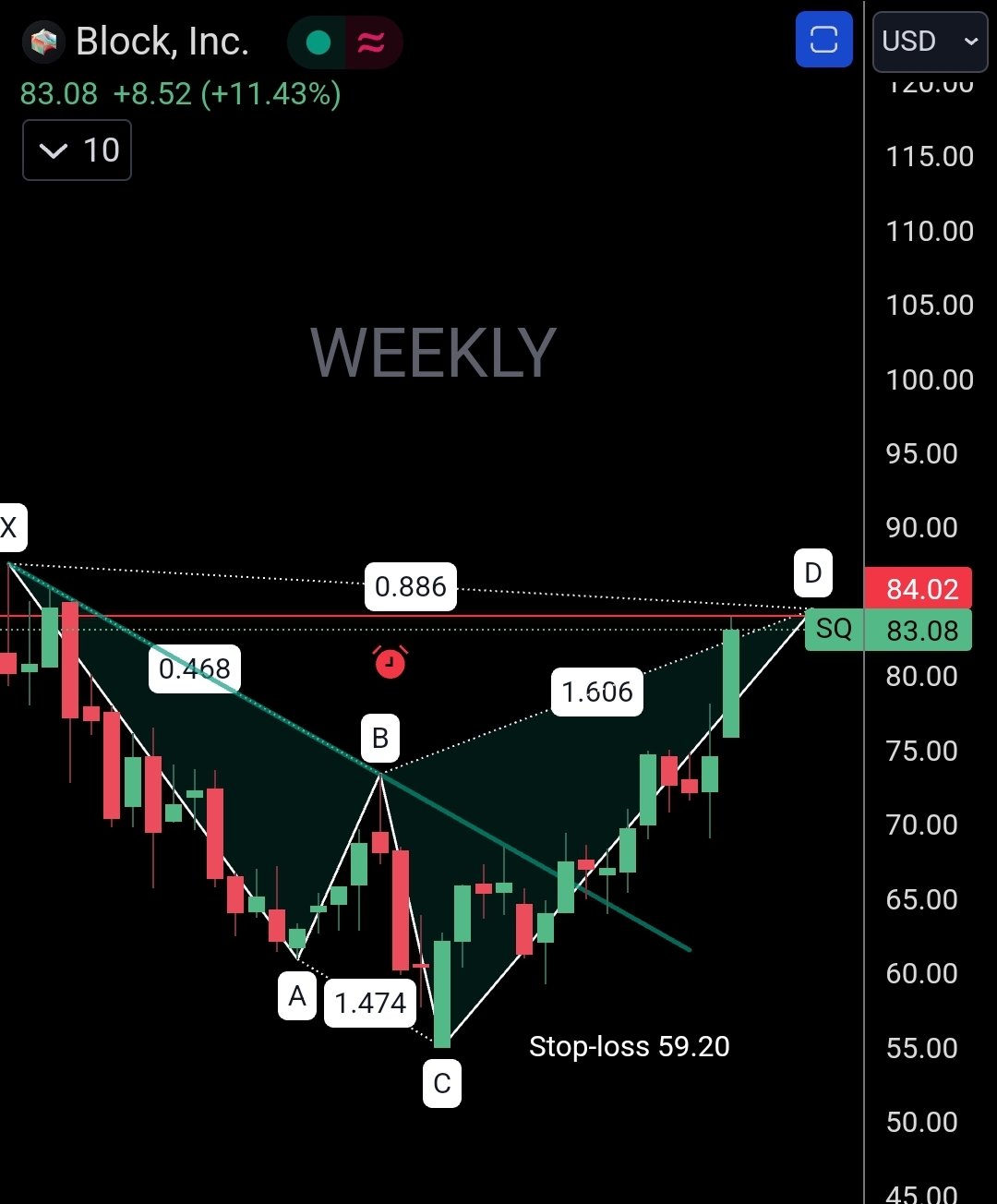$Block(SQ)$ Called it! Kaboom 💥 Projected price target of 84 hit precisely on SQ. Fantastic! 👏 👏 👏