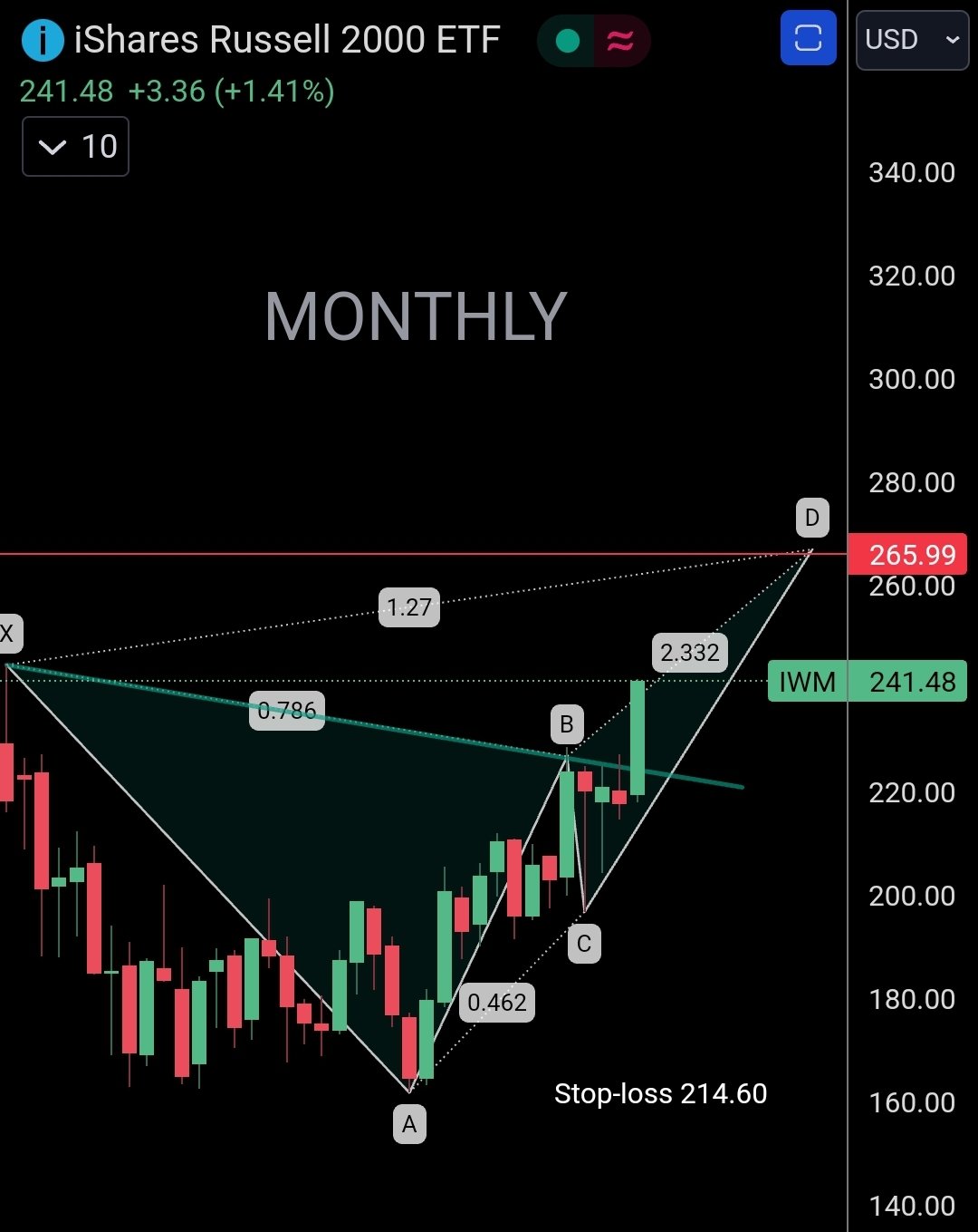 $iShares Russell 2000 ETF(IWM)$ Potential butterfly pattern still on track.