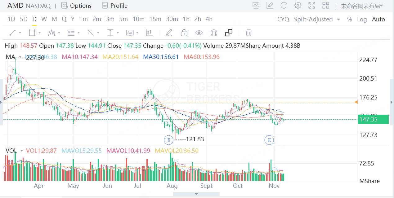 It's been 9 months since AMD entered a wide trading range, and a long consolidation box is gradually taking shape. If we were to pick one of the most stable stocks among tech companies right now, AMD would definitely be one of them. While Tesla has surged past the $300 mark, AMD, despite the boost from its Q3 earnings report, only saw a modest 4% increase before being mysteriously pulled back down to its 20-day moving average...