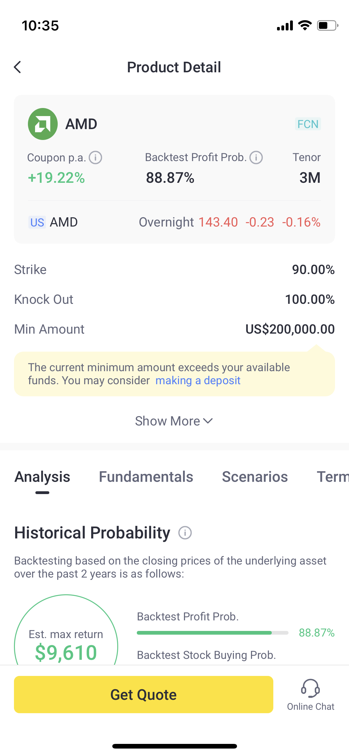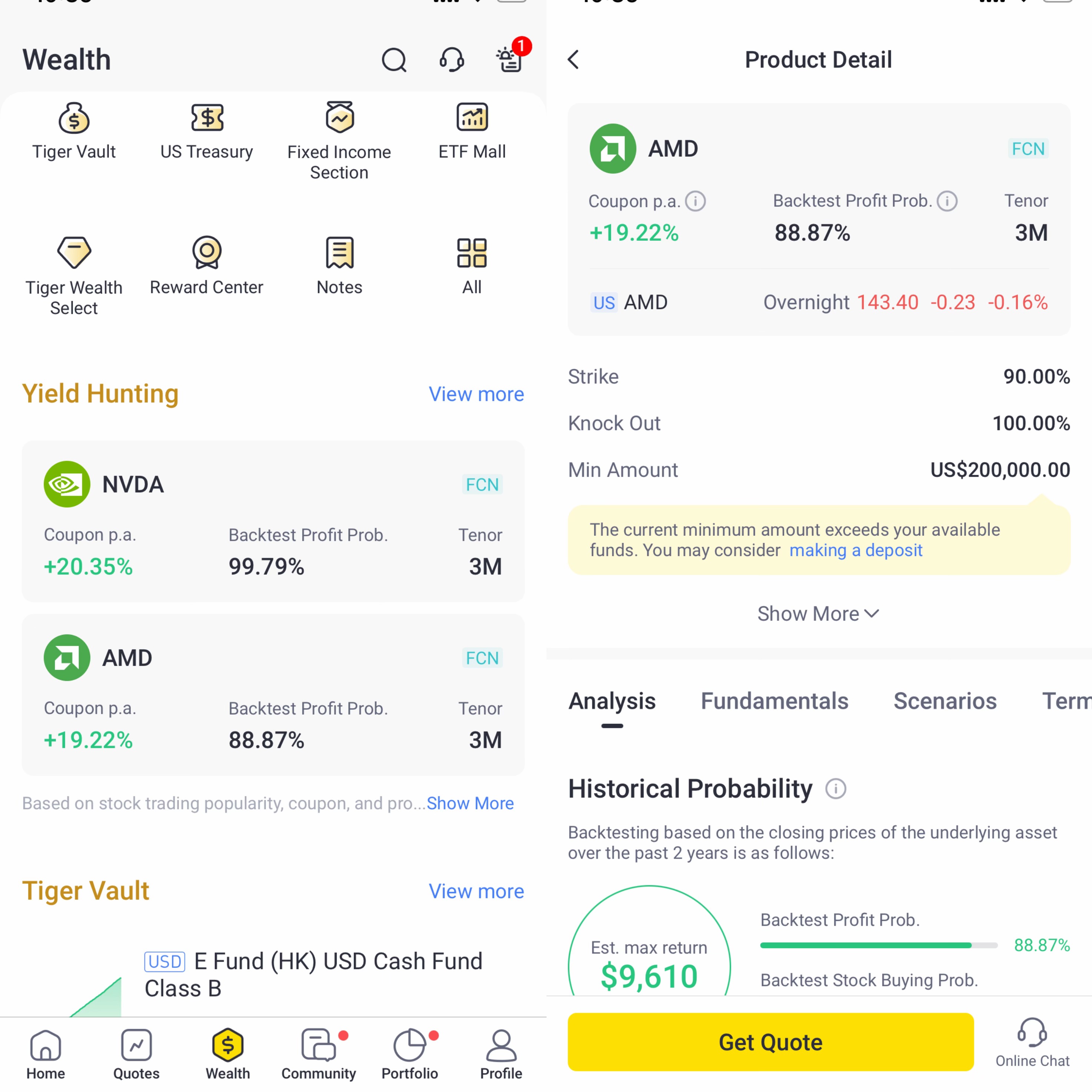 Given that AMD is a strong support stock with a prolonged consolidation pattern, the likelihood of breaking into an upward channel is much higher than entering a downward one. This inherent safety is already priced into the FCN's yield. Consequently, the current yield rate of 19.22% for AMD is not as high as it was a while ago. However, considering the current range-bound movement, using an FCN strategy for AMD now offers a better risk-to-reward ratio compared to other similar strategies.