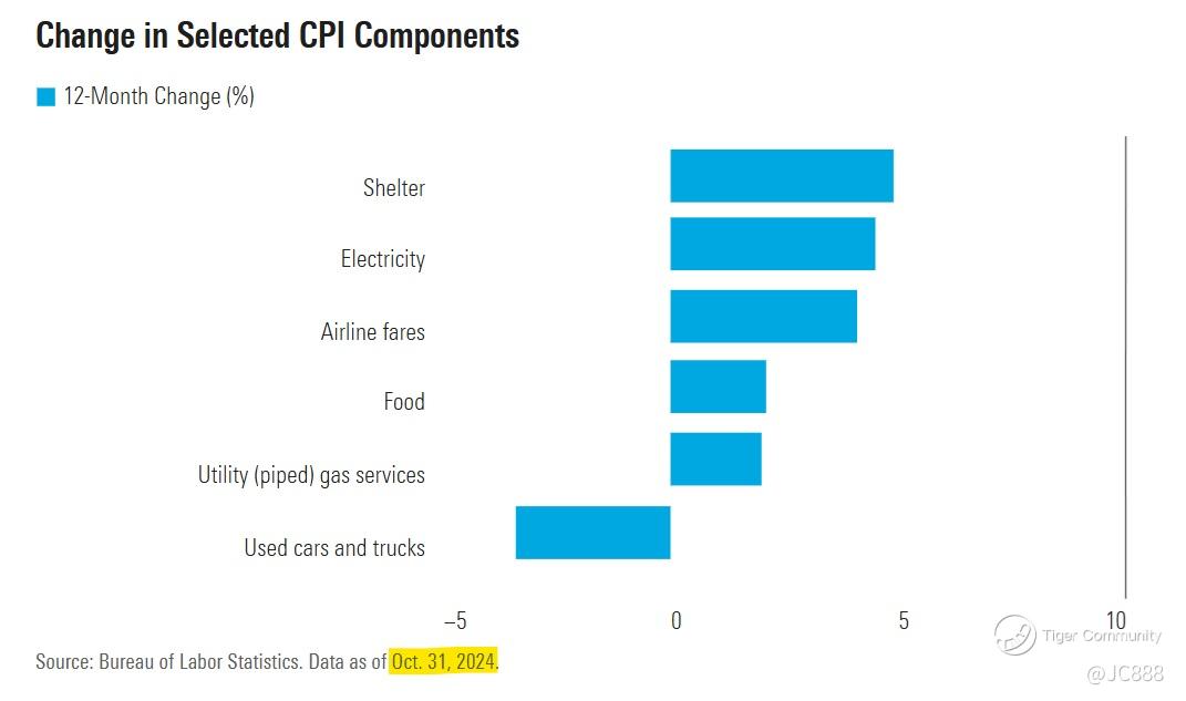 Shelter. Index that carries about 33% (one-third) weighting in the broader index, climbed another 0.4% in October, double its September move and up 4.9% annually. Shelter component remains a major impediment in getting inflation all the way back.