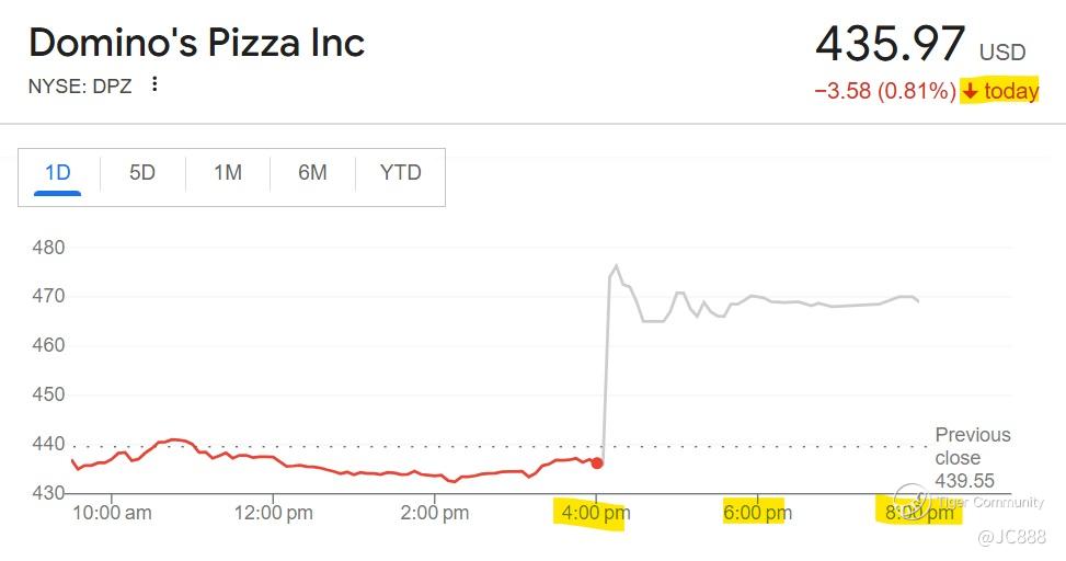 Upon filing reveal, Domino’s added more than +7% in after-hours trading immediately. (see above)