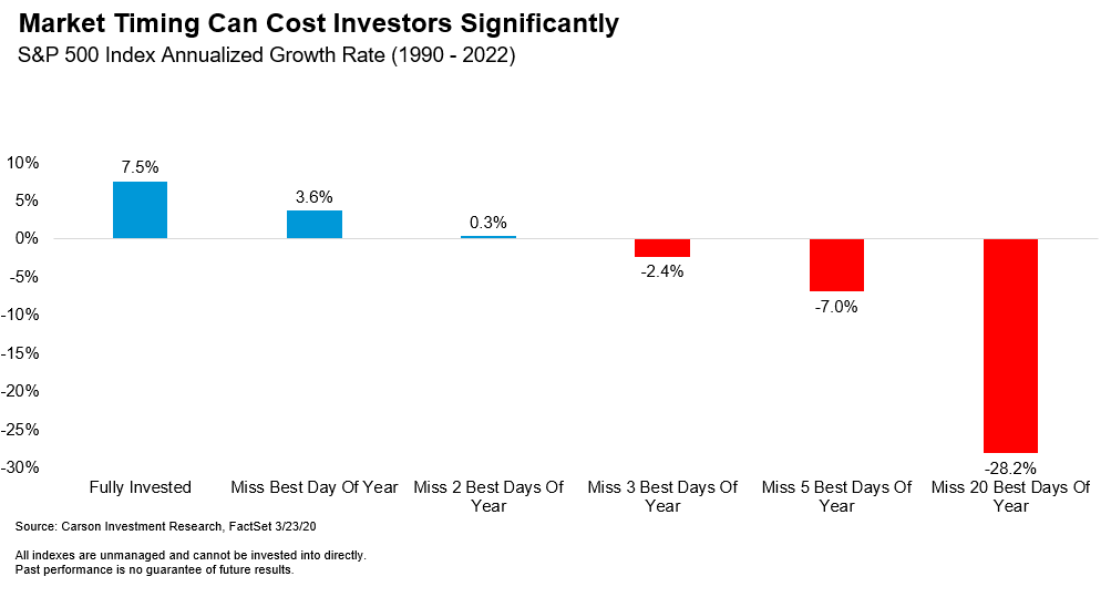 As this study from FactSet shows, missing just the top few days of returns can be costly to long-term returns. I’m not going to start timing the market now.