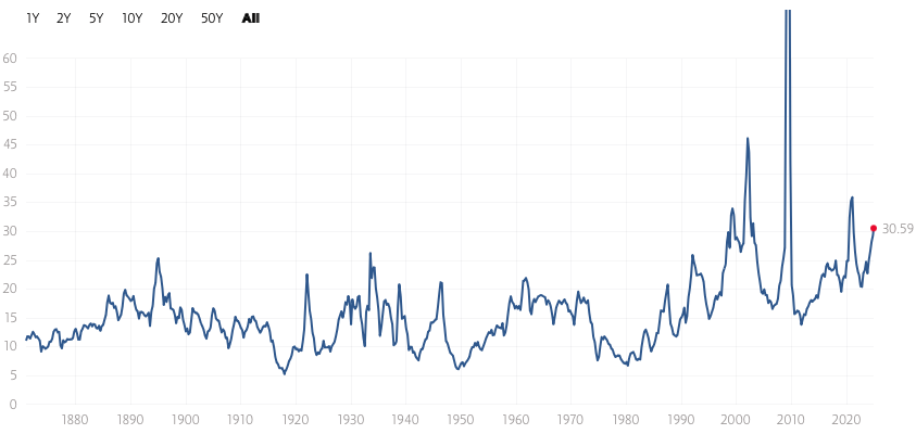 Before I get to what I’m doing, let’s look at why I’m not particularly excited about this market overall. The P/E ratio of the $.SPX(.SPX)$ is higher than at any point outside of the 2000 dot com crash, the financial crisis, or COVID.