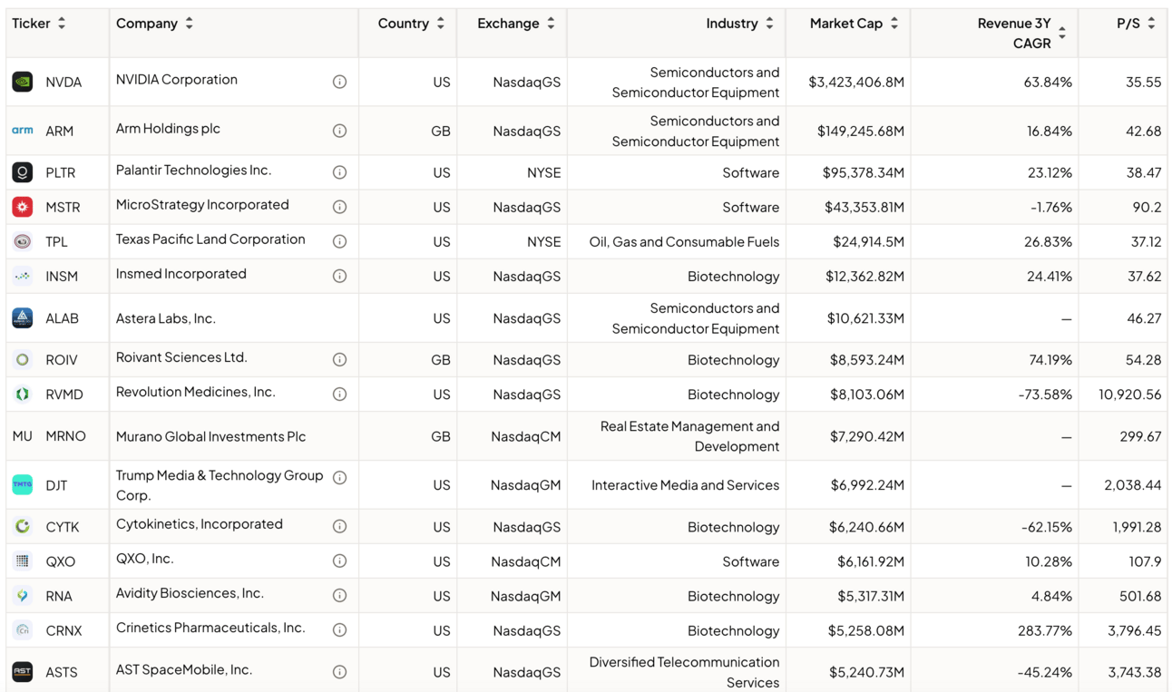 $NVIDIA Corp(NVDA)$ $ARM Holdings Ltd(ARM)$ $Palantir Technologies Inc.(PLTR)$ $MicroStrategy(MSTR)$ $Texas Pacific Land(TPL)$ $Insmed(INSM)$ $Astera Labs, Inc.(ALAB)$ $Roivant Sciences Ltd.(ROIV)$ $Revolution Medicines, Inc.(RVMD)$ $MURANO GLOBAL INVESTMENTS LIMITED(MRNO)$ $Trump Media & Technology(DJT)$ $Cytokinetics(CYTK)$ $QXO Inc(QXO)$ $Avidity Biosciences, Inc.(RNA)$ $Crinetics Pharmaceuticals Inc.(CRNX)$ $AST SpaceMobile, Inc.(ASTS)$