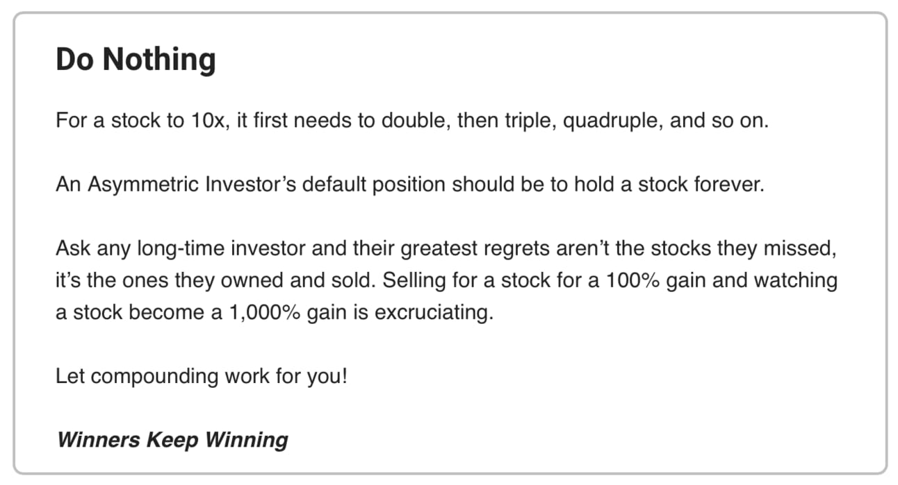 Hopefully, this email helps you understand my mindset in this market. I’m cautious, but reminding myself of the frameworks that work for asymmetric investing. Trust the process.