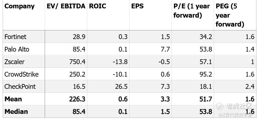 Compared to its peers, Fortinet’s EV/EBITDA is below the median, which might mean it is undervalued. Its ROIC is above the median, which might mean it is more effective in utilising its capital than its peers. Its EPS is at the median, which suggests similar profitability as its peers. Its P/E ratio is much lower than its peers, which might signal a severe undervaluation. Lastly, its PEG is average and healthy.