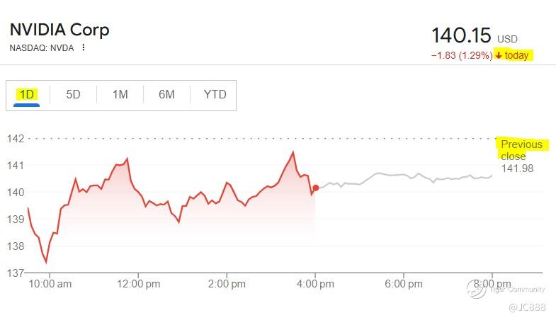 On Mon, 18 Nov 2024 Nvidia's shares fell by -1.29% to end the day at $140.15 per share.