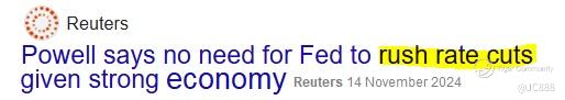Just last Thu, 14 Nov 2024, when Mr Powell was in Dallas to address business leaders, he said the followings that spooked US market: