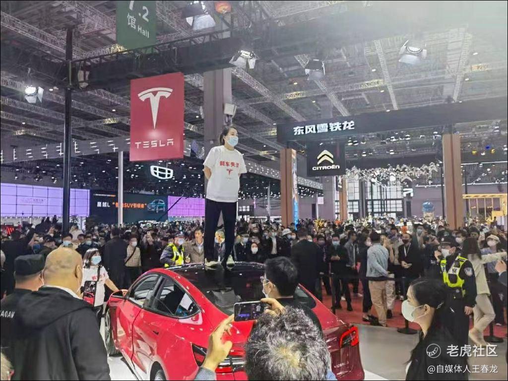 特斯拉女車主在上海車展維權了:站在車頂上大喊“剎車失靈”: