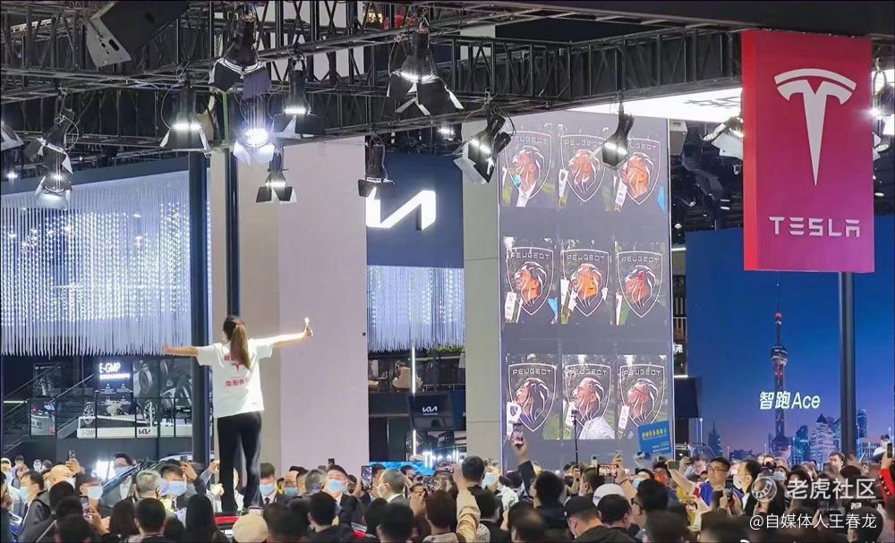 今天(4月19日)是上海車展開幕的日子,但在特斯拉站臺,一位女士站在特斯拉車頂上,疑似是特斯拉維權車主。
