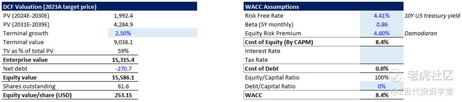 Based on a DCF valuation, my 1-year target price is USD259.85 (11.3% upside), which gives an intrinsic forward P/E ratio of 47.7x.