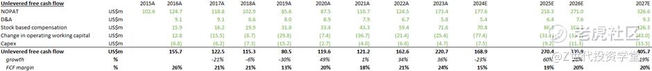 Gross margins in low-to-mid 50% because 50% of business is still professional services. Lower than standard 70%-80% pure SaaS business but these are necessary because these aren’t small implementation. It’s quite difficult to tie together a bunch of distribution centers, trucks, and retail stores. FCF margin consistently in 25% range (> EBIT margin), due to strong working capital dynamics and deferred revenue. Operating leverage increases as cloud business continues to scale (1Q24 +250bps YoY).