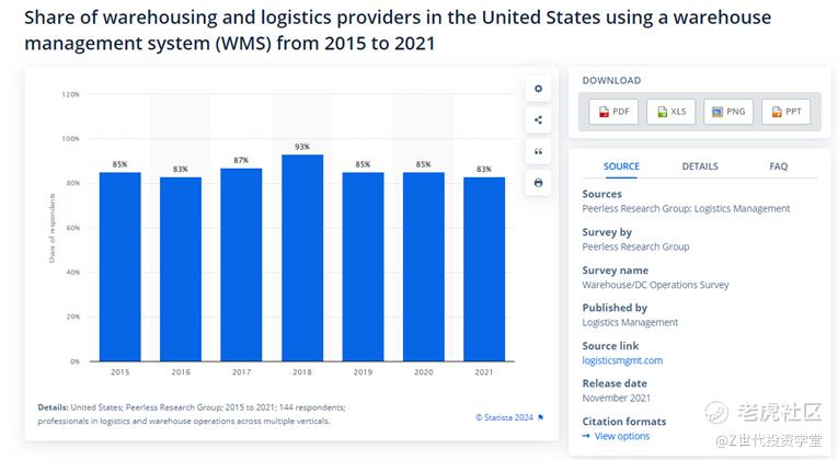 There is also room for growth in the market for WMS with only 83% of warehousing and logistics providers in the US using a WMS.