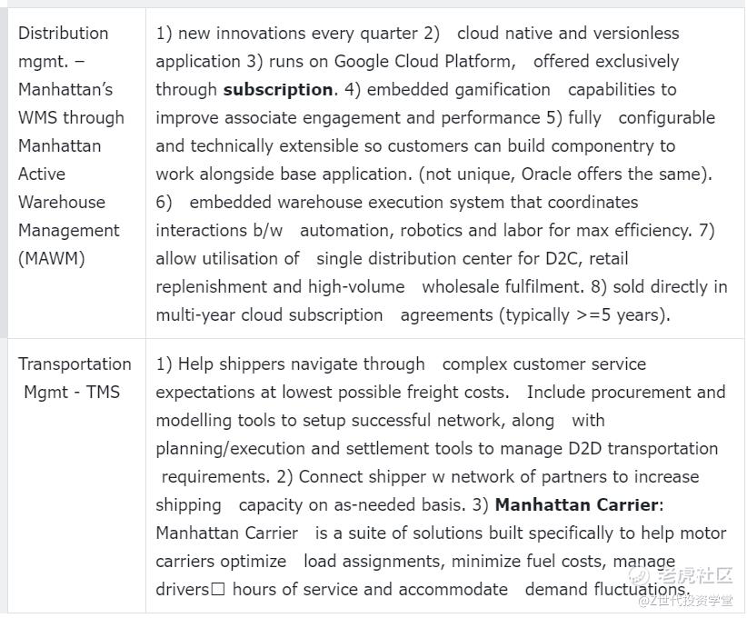 Cloud growth driven by companies shifting to omnichannel model of having stores and efficient e-commerce operation. For eg, “the business of retail has gotten much more complex over the past decade. Nike can’t just ship products to Footlocker and get their money anymore. They have to do DTC, have their own fulfillment centers, contract with logistics providers, and do returns. The operations have become much more complex which is a tailwind for Manhattan.”