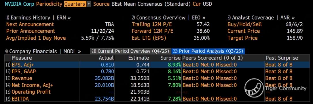 After hours, NVIDIA released its Q3 FY2025 earnings (for the three months ending October 27), significantly surpassing expectations.