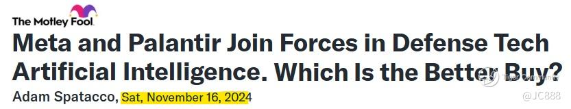 Having said that, the latest news on US military partnership between META & PLTR was out only on Sat, 16 Nov 2024.