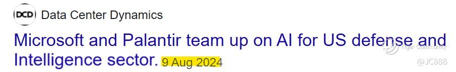 August 2024: A deal with $Microsoft(MSFT)$ that marries AIP with Microsoft's Azure cloud infrastructure across US defense agencies, in less than 6 months. (see below)