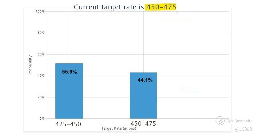 Probability of status quo, no interest cut: Rose from 17.5% to 38.4% to 44.1% (latest).