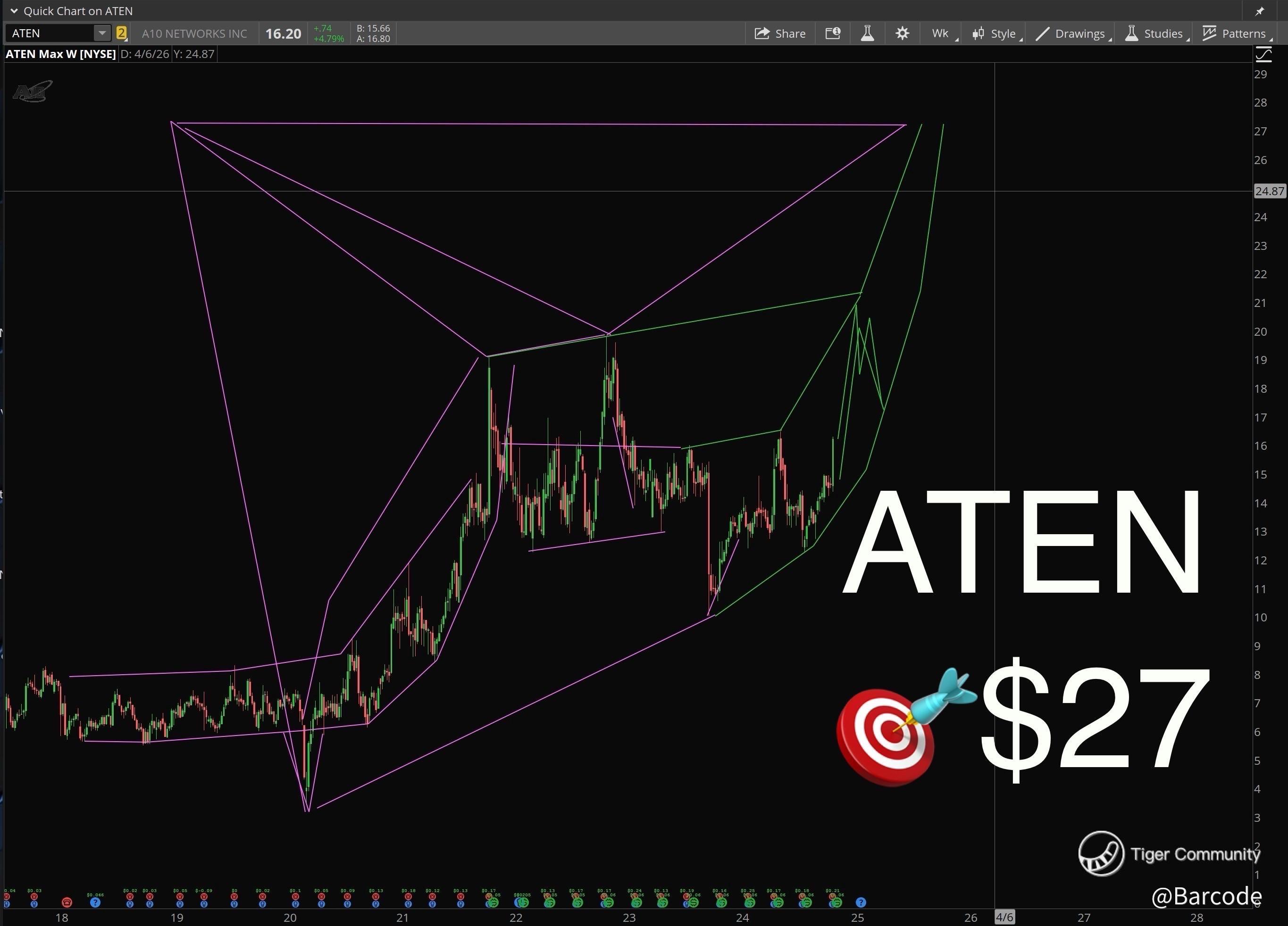 β’ The pattern forming here is as sharp as a tuxedo at a black-tie gala. With bullish momentum and rising volume, ATEN looks set to strut its way past $28 with flair.