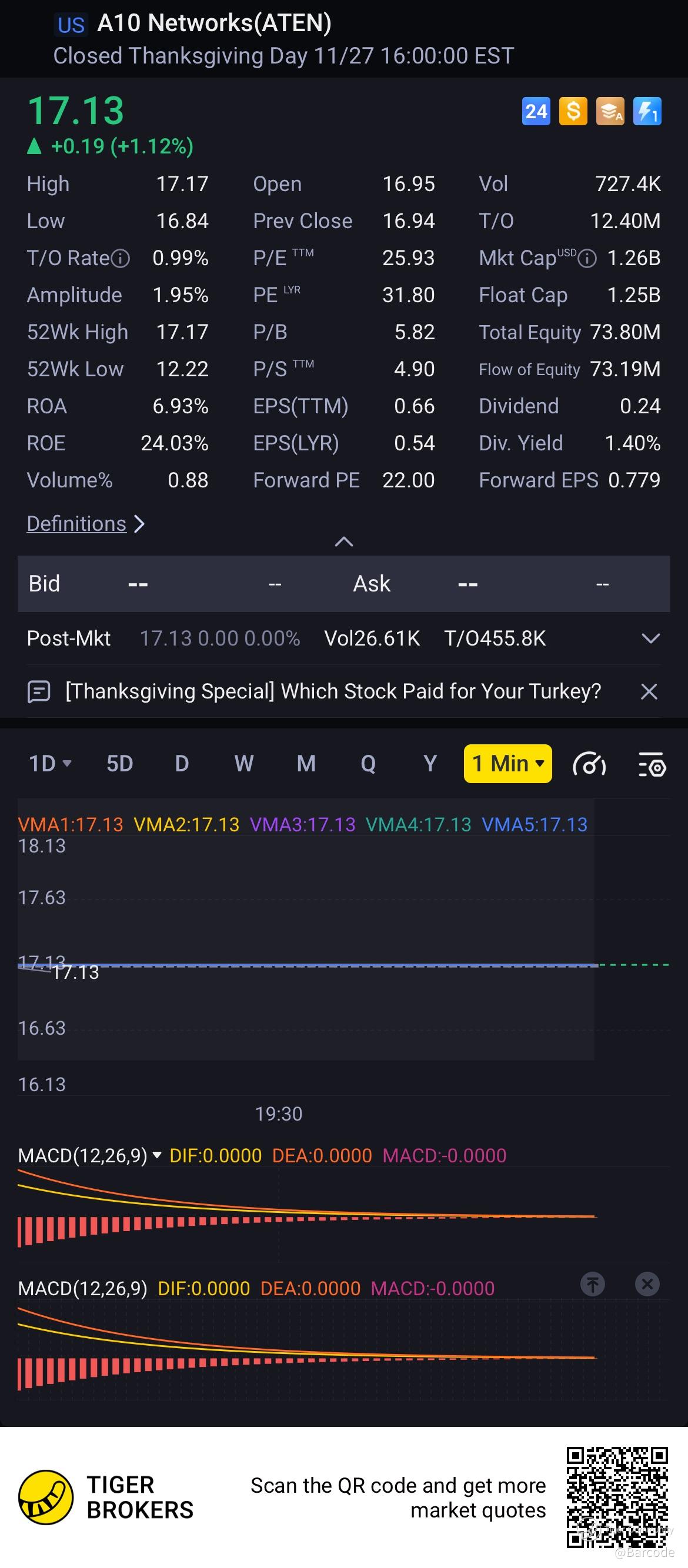 Stock Price Analysis:The support price for A10 Networks as of November 27, 2024, is $13.91, while the resistance price is $17.13. The current stock price is $17.13, indicating that it has reached the resistance level. The average cost for the stock is $14.88, which is below the current stock price. This suggests that investors who bought the stock at a lower price may consider taking profit at the current level.