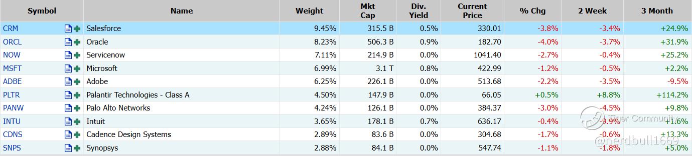 Top 10 Holdings Performance in IGV