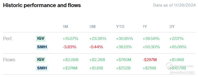 So far in November, a major exchange-traded fund that tracks software iShares Expanded Tech-Software Sector ETF (IGV) is up 15.07%, putting it on track for its biggest one-month gain in a year, although it was almost flat on Wednesday (27 Nov) with -0.03%, while we saw SMH lost -3.83% this month.