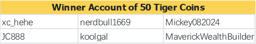- MrzorroΒ·2024-11-29Thank you, @Daily_Discussion , for the tiger coinLikeReport