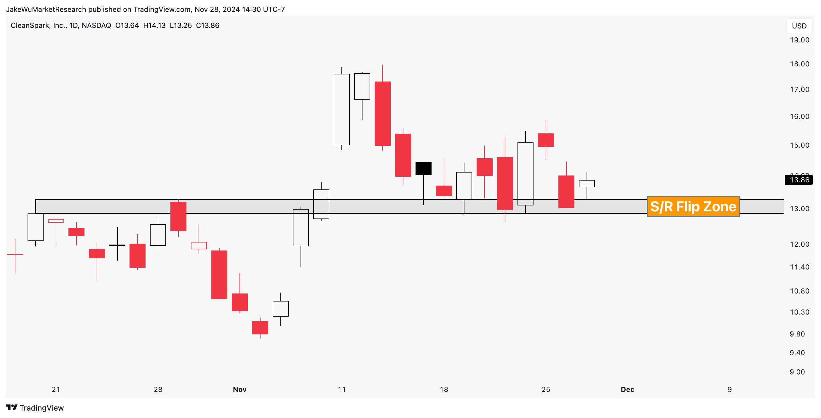 $CleanSpark, Inc.(CLSK)$ Just an S/R flip on the daily candle chart.