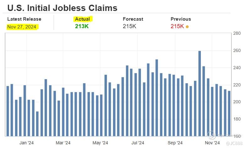 For week ending 23 Nov 2024, initial jobless claims fell by -2,000 claims to 213,000. (see above)