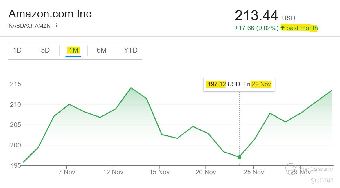 On Wed, 4 Dec 2024 Amazon ended trading higher by +1.3% (+$2.73) at $213.44.