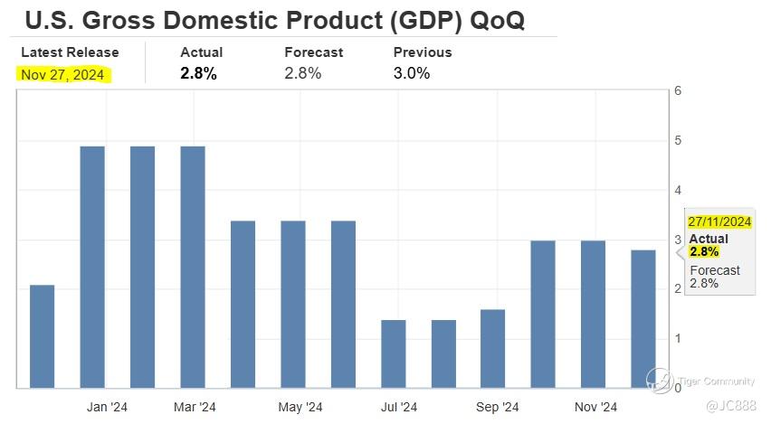 27 Nov 2024 - Q3 2nd estimates remained 2.8% vs adjusted Forecast (2.8%) vs Q2 GDP (3.0%).