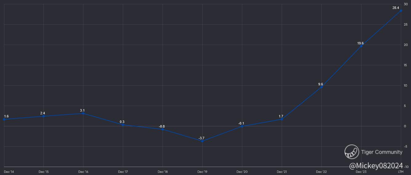 Revenue Growth: A stellar 40.8% compound annual growth rate (CAGR) over the past decade.