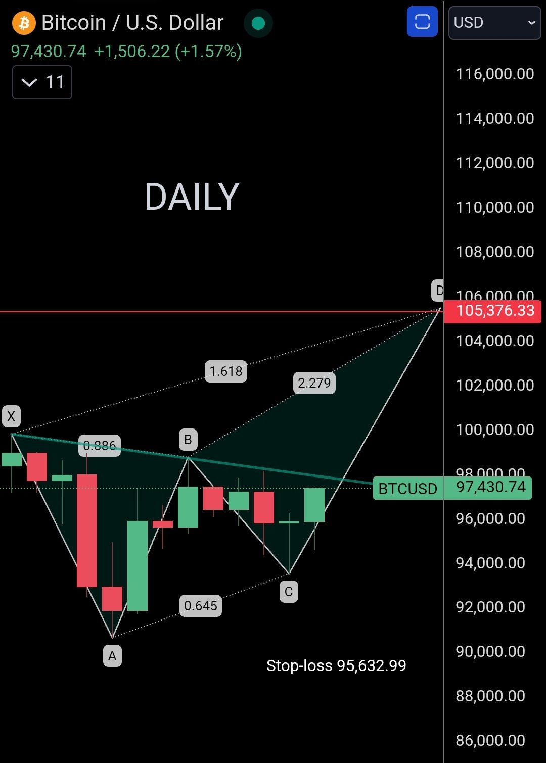 $Bitcoin(BTC.USD.CC)$ UPDATE: BTC Potential Deep Crab Pattern Developing. Projected price target $105,376.33