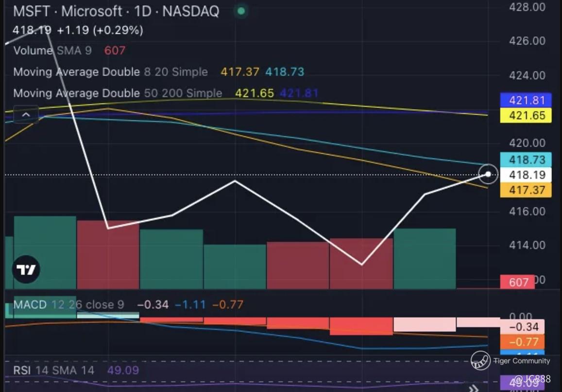 $Microsoft(MSFT)$ time for me to take some profit or hold? What are your thoughts fellow tigers? @TigerTradingNotes