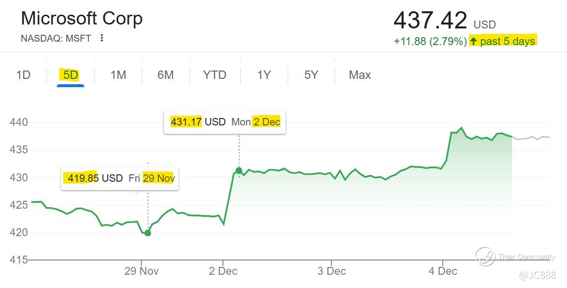 It is anticipated that by the time half-day trading resumes on Fri, 29 Nov 2024, MSFT might be even lower.