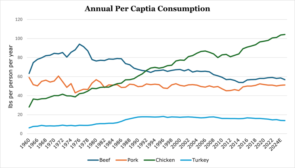 Tyson has not expanded or contracted its capacity since the beginning of 2023 and stated that it will be focusing on being prepared for the upcycle sometime past 2025. It expects similar profitability levels as 2024, but a more pronounced volume contraction once Heifer retention begins sometime in the second half of 2025.