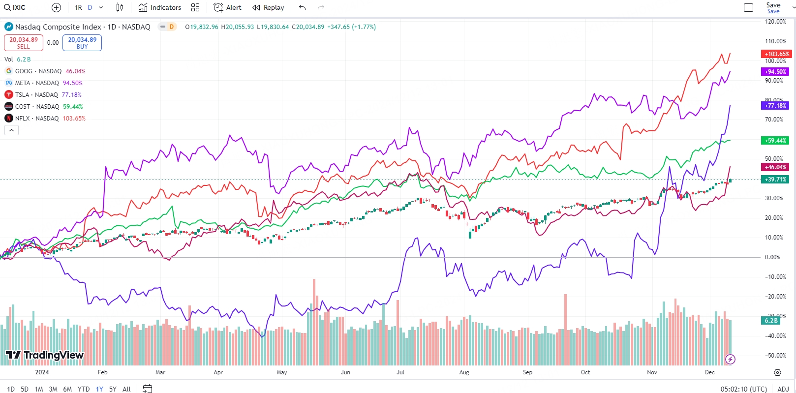 Several Nasdaq-listed companies, including $Alphabet(GOOG)$ , $Meta Platforms, Inc.(META)$, $Tesla Motors(TSLA)$, $Costco(COST)$ and $Netflix(NFLX)$, also hit new highs, reflecting the robust performance of these individual stocks.