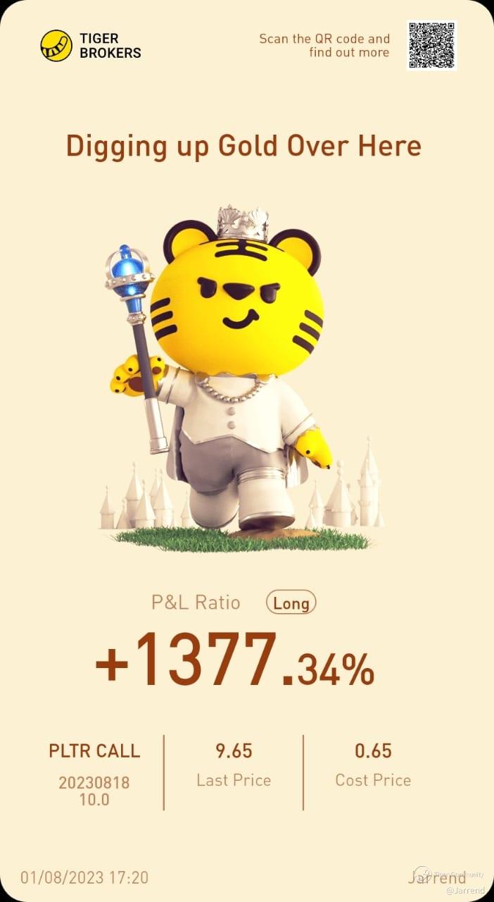 $Palantir Technologies Inc.(PLTR)$  Notice Palantir since it was $6. been investing in both share and options in PLTR while everyone else think it is a shitty company. Although it is an old photo, but it is my first time of getting this kind of return. Eventually it goes up to 1800% just on a single option. Still holding some shares of PLTR. In PLTR we trust.