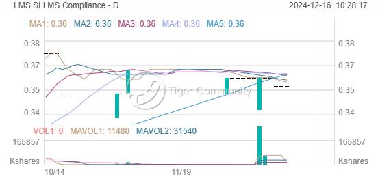 Between Dec 9 and 10, LMS Compliance executive director and CEO, Ooi Shu Geok, and executive director and chief development officer, Chong Moi Me, increased their total interest in the Catalist-listed company from 83.83% to 84.01%. The 185,000 shares were acquired at an average price of S$0.352 per share.