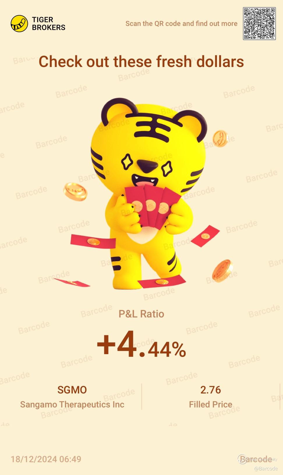$Sangamo Therapeutics Inc(SGMO)$ One day trade for some pocket money, closed positions and will look to trade again once it breaks resistance around $2.75 and starts pushing out. Very happy with my 1 day play. Brought large quantity so it doesn't take long to make a quick profit. Could double into January but heavily traded with high volume.