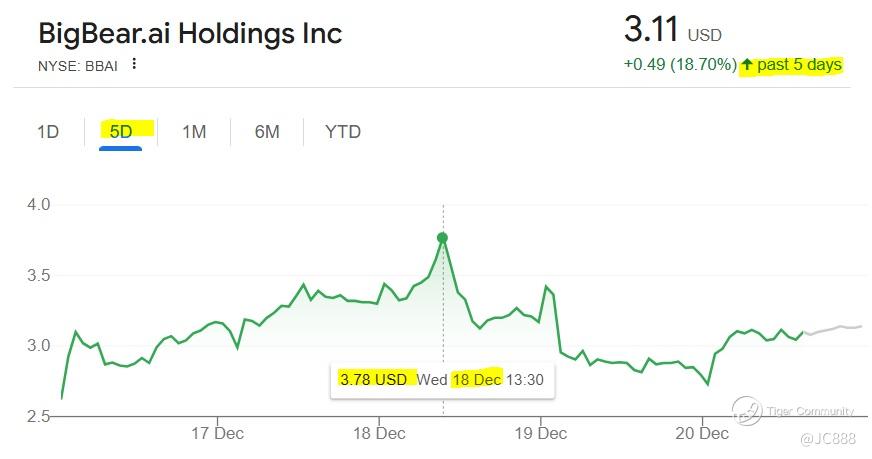 Instead, I focused on $BigBear.ai Holdings(BBAI)$ which I had first mention in my Sat, 14 Dec 2024 post. (click here ! to read, Repost to share ok)