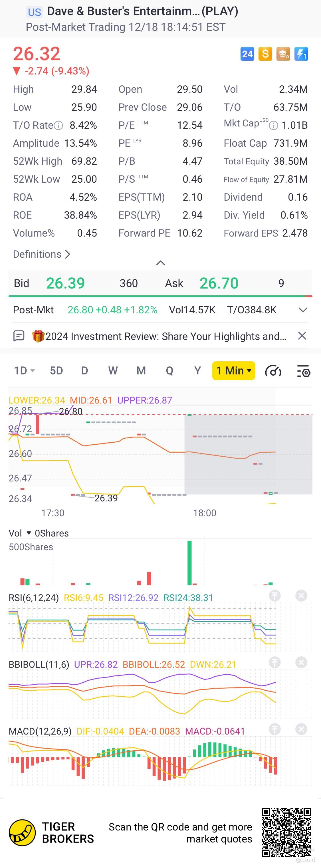 $Dave & Buster's Entertainment(PLAY)$ If it can't cut it before xmzas it's not going to get much better, but it could get some new year contracts so long call contracts on the basis of a green bolster might be worth watching after it already got hit 20% odd with earnings-